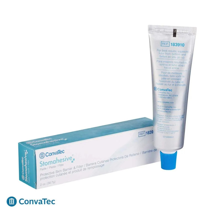 خمیر استوما کانواتک (ConvaTec Stomahesive Paste) با پر کردن چینها و ناهمواریهای پوست اطراف استوما، از نشت و تحریک پوست جلوگیری میکند و چسبندگی کیسه استوما را بهبود میبخشد. مناسب برای مراقبت روزانه از استوما